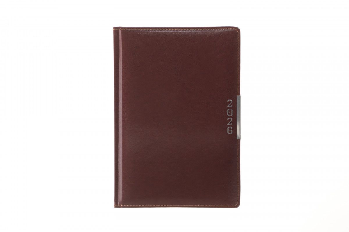 Kalendarz posiada przejrzysty układ kalendarium, rozbudowaną część informacyjną oraz kolorowe mapy Polski i Europy. Bloki szyte nićmi, dwa kolory druku (szary-burgund). Oprawa na tekturze z gąbką, przeszywana. Aksamitna, matowa, skóropodobna okleina umożliwia wykonanie nadruków, głębokiego, termoprzebarwialnego tłoczenia i personalizacji kalendarza. Posiada wstążkę w kolorze zharmonizowanym z kolorem okleiny. Brak stopki wydawniczej.