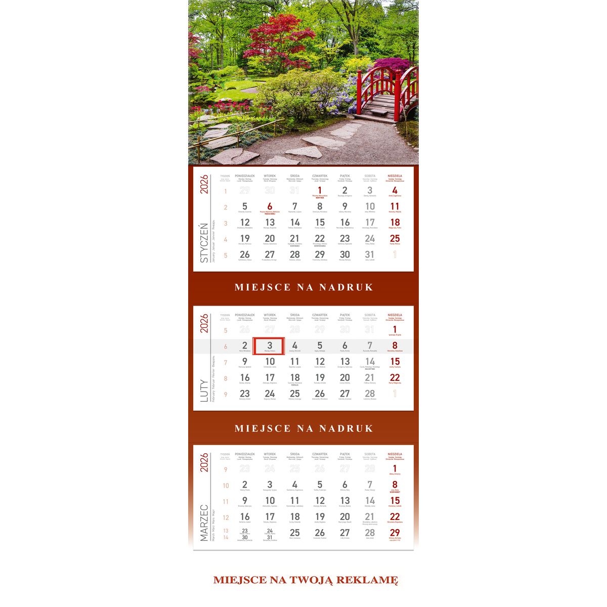 Kalendarz ścienny PLECKI BORDO kalendarz trójdzielny 850mm x 295mm Wydawnictwo Wokół Nas (KS 055)