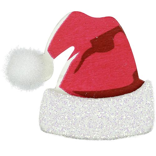 Naklejki papierowe 3D, wzór: czapki Mikołaja z pomponem, kolor: czerwono-białe, wymiary: 25x27 mm. 12 sztuk.