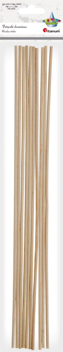 Drewniane patyczki do dekorowania, okrągłe, wykonane z naturalnego drewna, można je dowolnie zdobić: malować, oklejać, lakierować. Długość: 30 cm, średnica: 3 mm. 10 szt.
