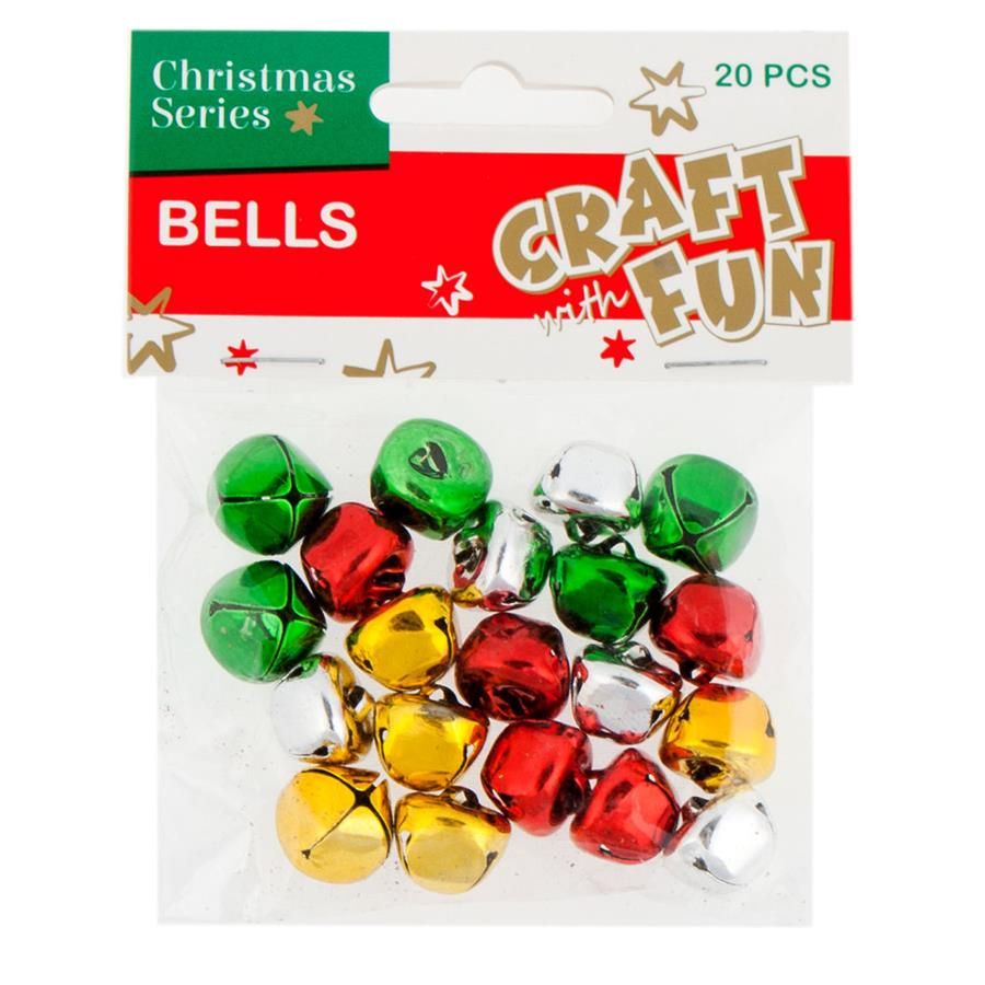 Zalety produktu: Opakowanie zawiera 20 sztuk metalowych dzwoneczków w 4 kolorach złotym, srebrnym, czerwonym, zielonym. Przy pomocy tego zestawu możesz zaprojektować własne ozdoby świąteczne a także przyozdobić prezenty świąteczne pod choinkę. Używaj tych produktów w połączeniu z innymi akcesoriami z serii Craft With Fun lub z innymi kompletami z serii. Zestaw wykonany z tworzywa sztucznego. Produkt przeznaczony dla dzieci w wieku: 3 . Wymiary opakowania dł. x wys. x gł. cm 9x13x1 waga produktu w opakowaniu kg : 0,023kg. Pakowany w folię  z zawieszką . iner 12 szt. Karton zbiorczy 288 szt.