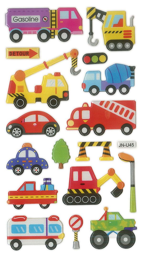 Naklejki wypukłe. Wzór: pojazdy użytkowe. 17 sztuk.
