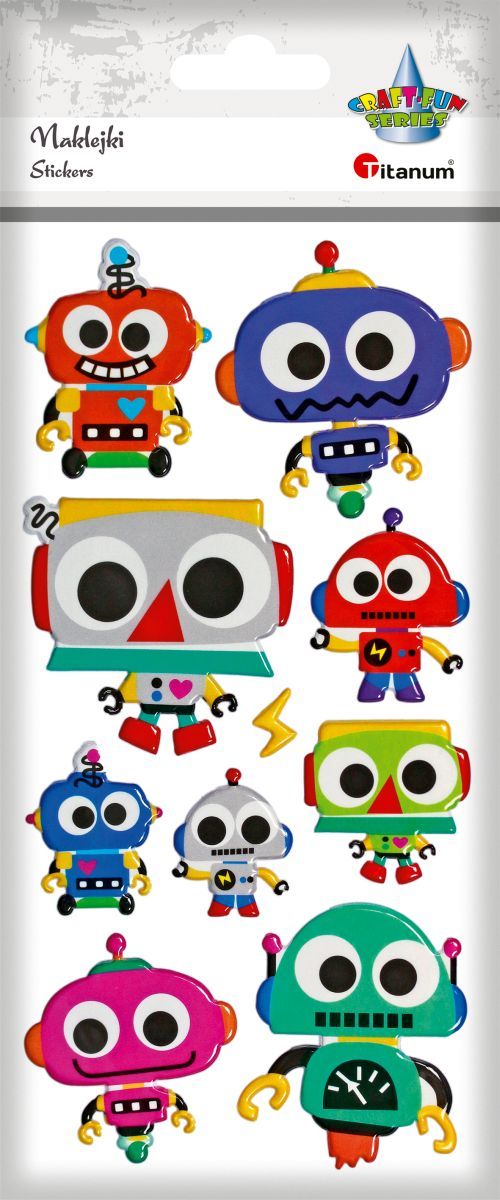 Naklejki wypukłe miękkie. Wzór: roboty. 10 sztuk.