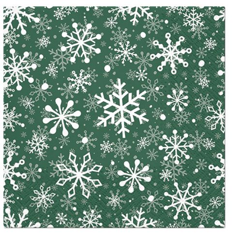Serwetki Lunch BN Christmas Snowflakes green mix bibuła [mm:] 330x330 Paw (SDL230616)