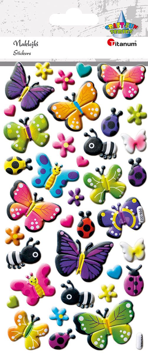 Naklejka (nalepka) Craft-Fun Series wypukłe motyle, biedronki, pszczółki Titanum (PPA008)