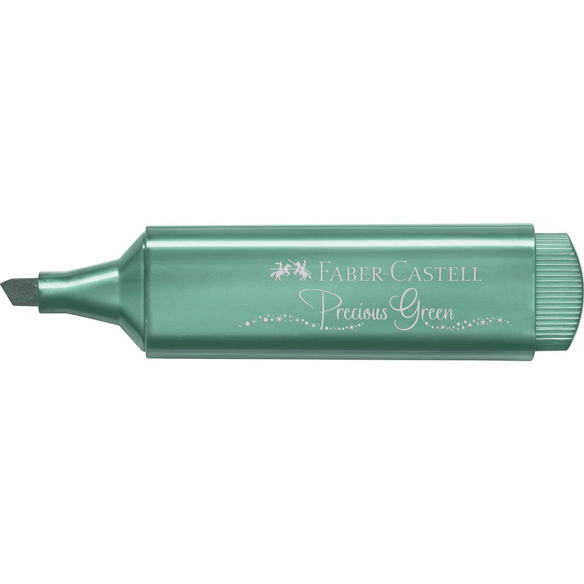 Zakreślacz 1546 Faber-Castell w kolorze metalicznym zielonym. Wysokiej jakości błyszczący kolor, idealny do zaznaczania, podkreślania i wyróżniania. Efekt metaliczny zmienia się pod różnym oświetleniem. Odpowiedni do wszystkich rodzajów papierów. Uniwersalny tusz na bazie wody. Odporny na rozmazywanie. Ze ściętą końcówką o szerokości linii pisania 1 - 5 mm. Dostępny w różnych kolorach i zestawach.
