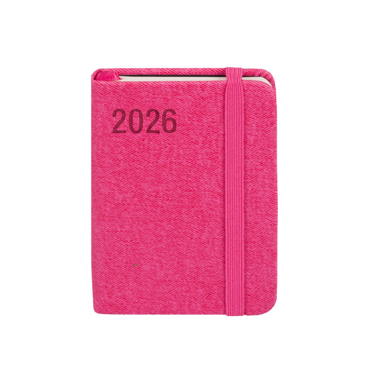 format A7, oprawa: twarda, materiał: ekskluzywna skóra ekologiczna, papier: 80g, kolor papieru: ecru, pionowa gumka zamykająca, zaokrąglone rogi, wyklejka z ozdobnego czarnego papieru, koperta na luźne karteczki, wstążka w kolorze okładki, dodatkowe strony: skrócony kalendarz 2025-2026, plan roku 2026, ważne wydarzenia notatnik oraz skorowidz adresowy, 144 strony, 110x78 mm