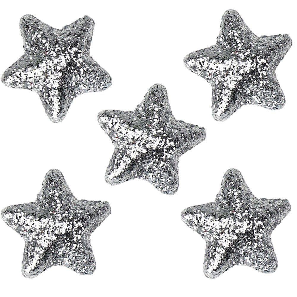 Styropianowe gwiazdki, wymiary: 20x18 mm, grubość: 10 mm, brokatowe białe. 60 sztuk.