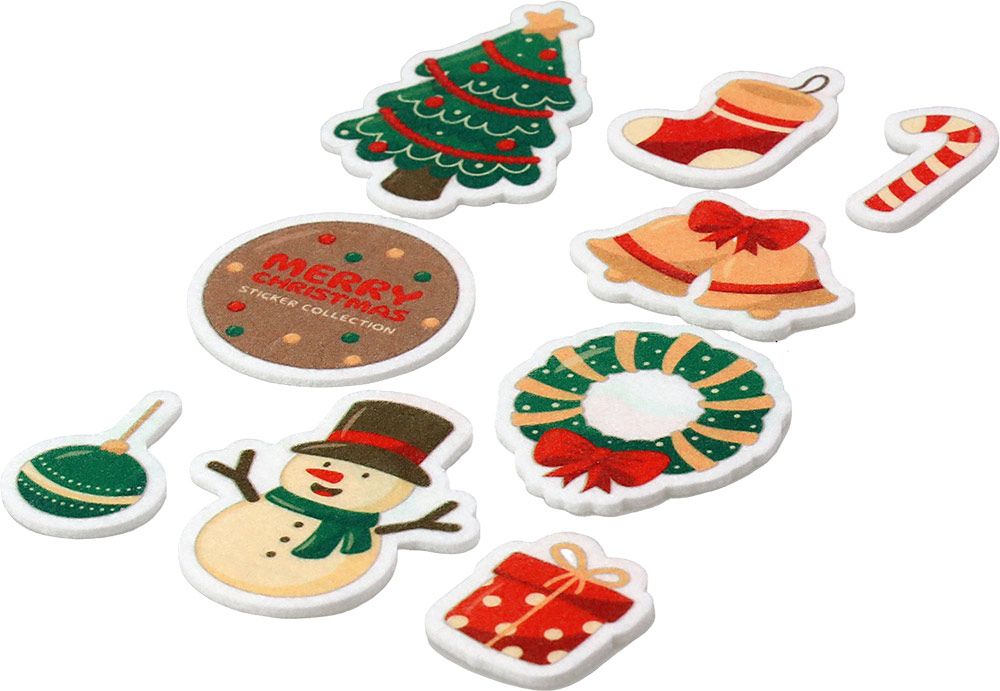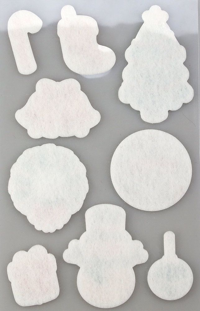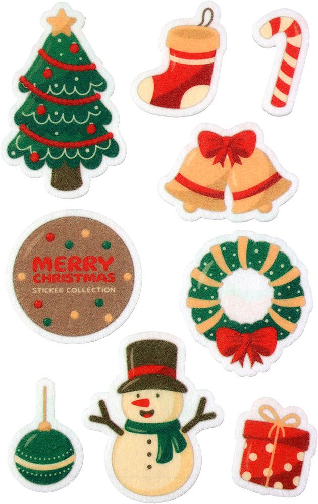 Naklejki filcowe, wzory: choinka, wianek, bałwanek, prezent, bombki. Mix rozmiarów i kolorów. 9 sztuk.