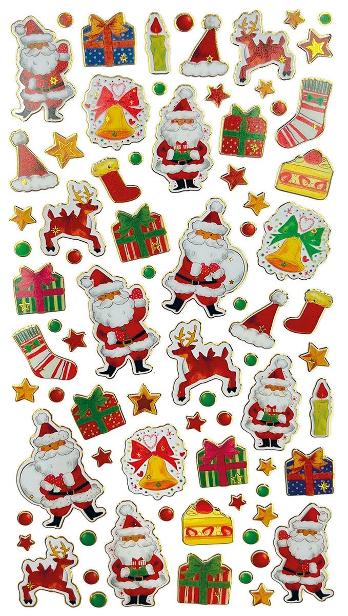 Naklejki foliowe, wzór: Mikołaje, renifery, prezenty, skarpety mix.