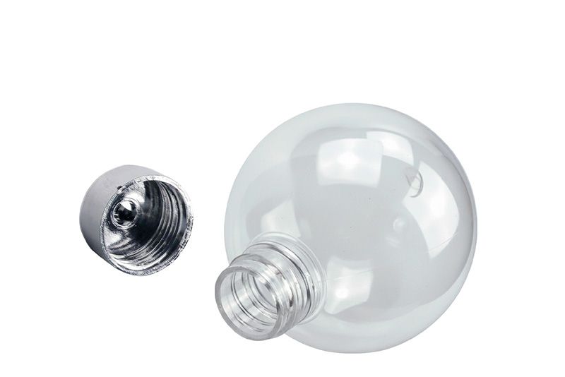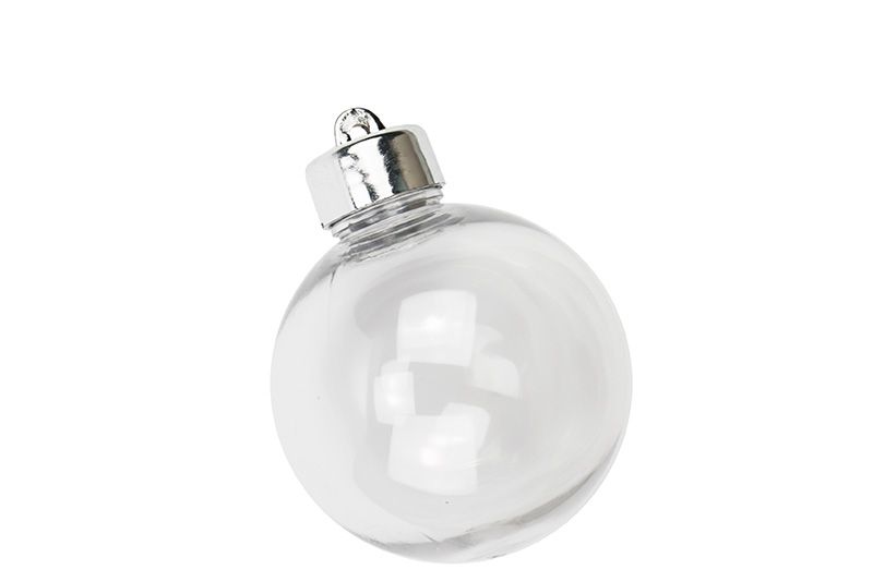 Plastikowe, przezroczyste bombki ze srebrną zakrętką, wygodne do wypełnienia dekoracjami, średnica 60 mm, wysokość 78 mm. 6 sztuk.