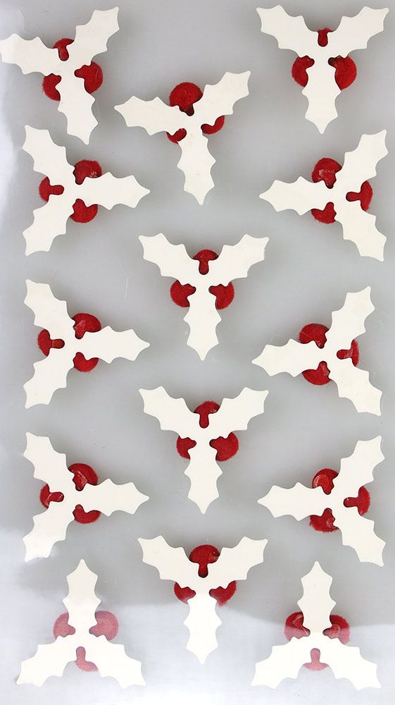 Naklejki 3D, wzór: liście ostrokrzewu z owocami z pomponów.