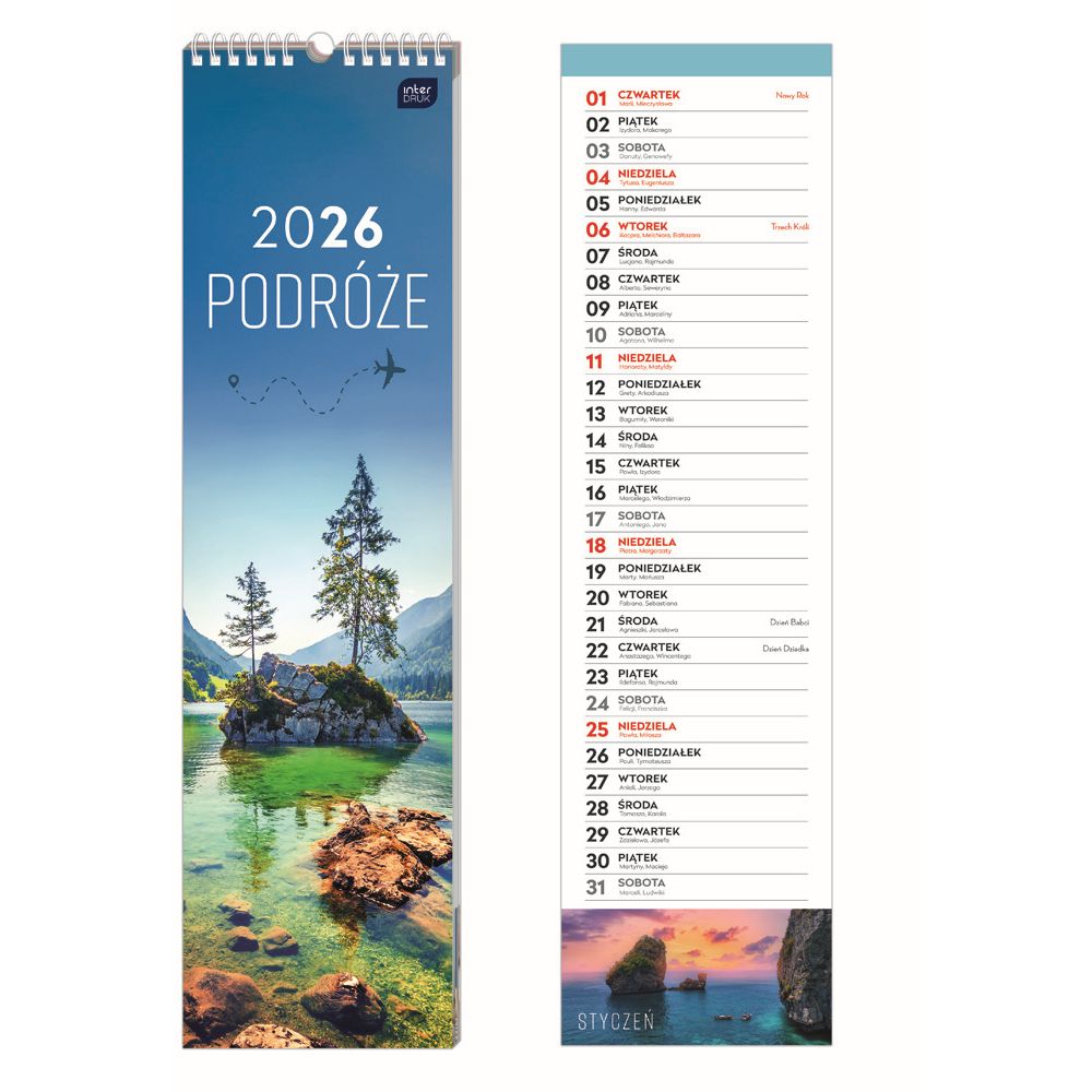Kalendarz ścienny paskowy 135mm x 500mm Interdruk (PODRÓŻE)