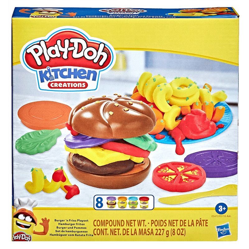 Zestaw Play-Doh Burger i frytki to nowy zestaw od Play-Doh będący idealnym prezentem dla wszystkich dzieci, a zwłaszcza tych które lubią twórczą i kreatywną zabawę. Dzięki temu zestawowi przygotujesz wyjątkowego burgera z frytkami. Jakie lubisz najbardziej - proste czy zakręcone? Przygotuj bułkę, dodatki według uznania, od sałaty przez ser po mięso, frytki do tego i gotowe! Zestaw jak z fast food'u!