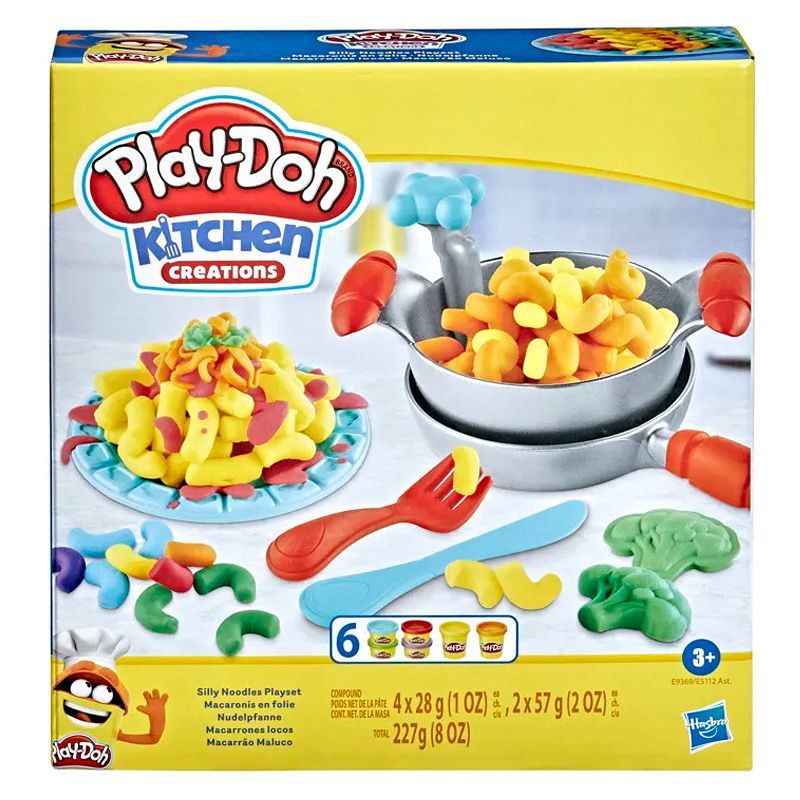 Oprócz jednokolorowych tub z ciastoliną w zestawie znajduje się 9 akcesoriów Play-Doh, które pozwalają dzieciom formować różne rodzaje makaronu i dodawać fantazyjne nadzienia za pomocą stempli oraz dodatkowe akcesoria: talerz, nóż, widelec oraz wałek, które sprawią, że zabawa będzie jeszcze bardziej realistyczna. Dzieci do dyspozycji mają tutaj aż 6 nietoksycznych kolorów Play-Doh: słoiczki o pojemności 56 g i 28 g, umożliwiające tworzenie różnorodnych makaronów i kombinacji kolorystycznych.
