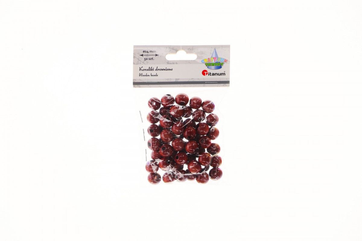Koraliki drewniane, okrągłe, 14 mm, lakierowane brązowe. 50 sztuk.