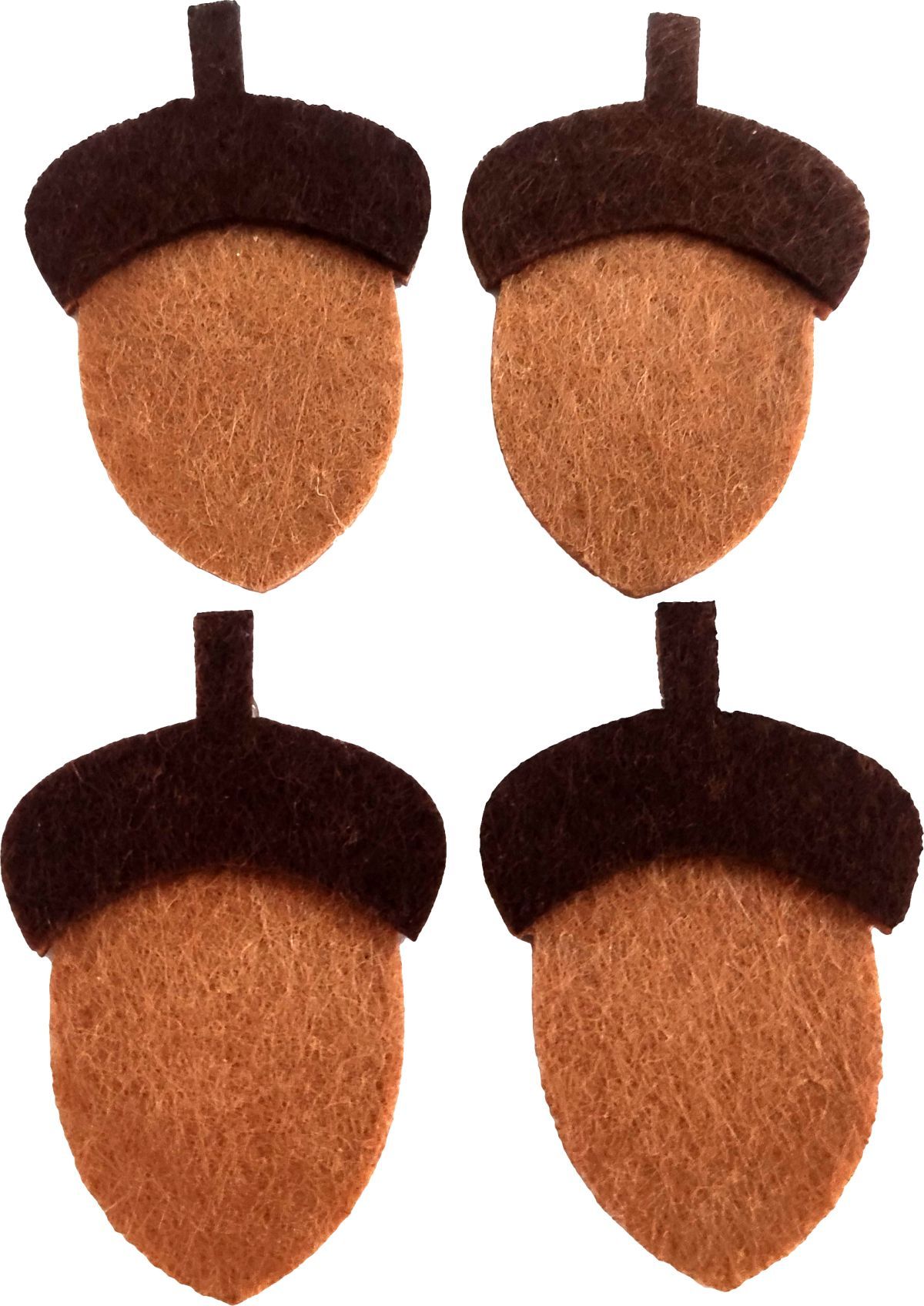 Dekoracje filcowe, wzór: żołędzie 3D, wymiary: 36x53 mm, kolor: pomarańczowo-brązowe. 4 sztuki.