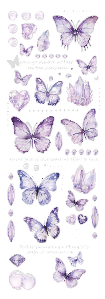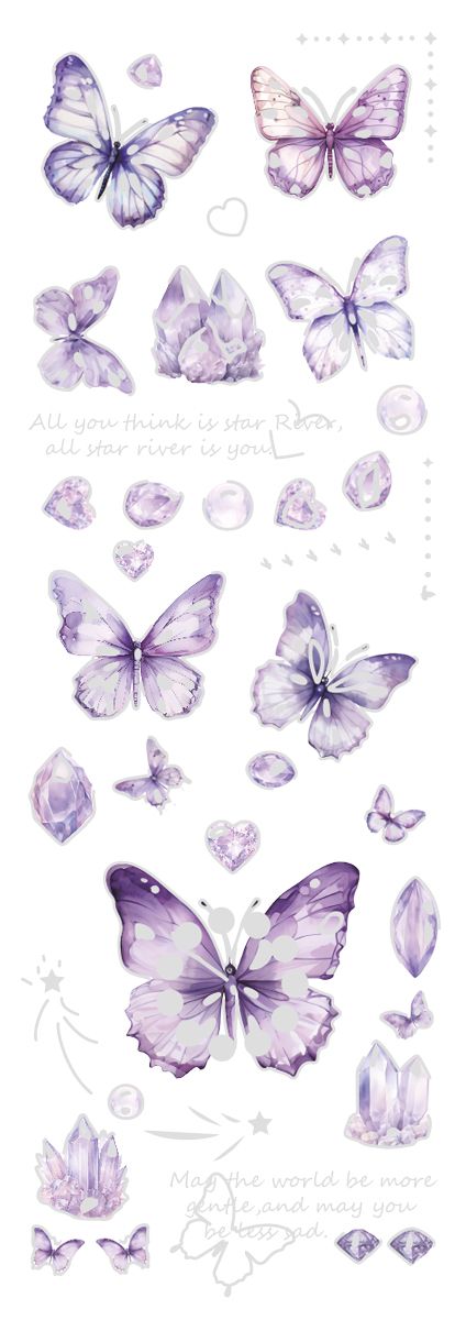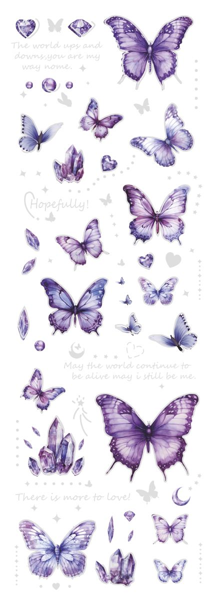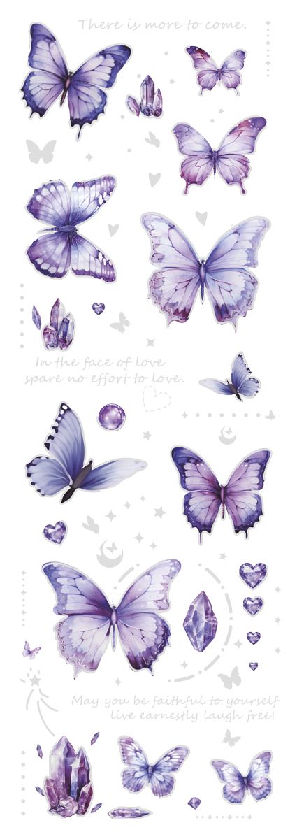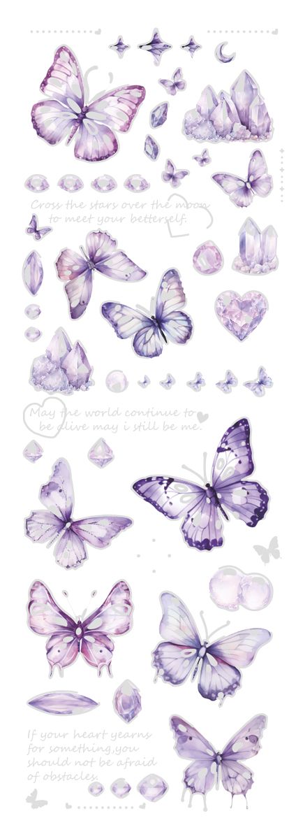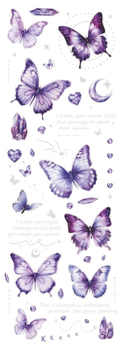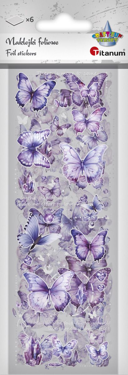 Naklejki foliowe, 6 plansz, wzory: motyle, tonacja fioletowa.