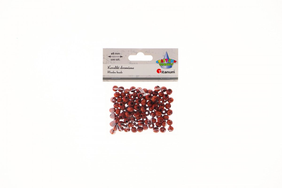 Koraliki drewniane, okrągłe, średnica 8 mm, lakierowane brązowe. 100 sztuk.
