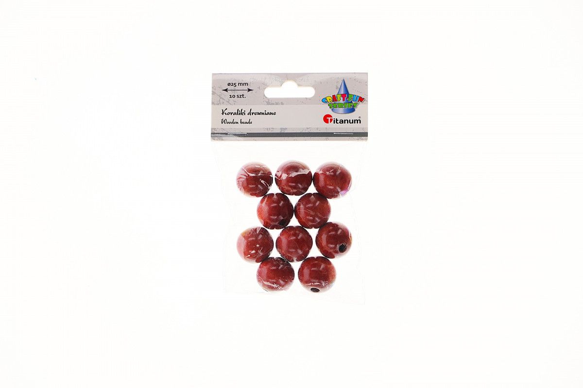 Koraliki drewniane, okrągłe, 25 mm, lakierowane brązowe. 10 sztuk.