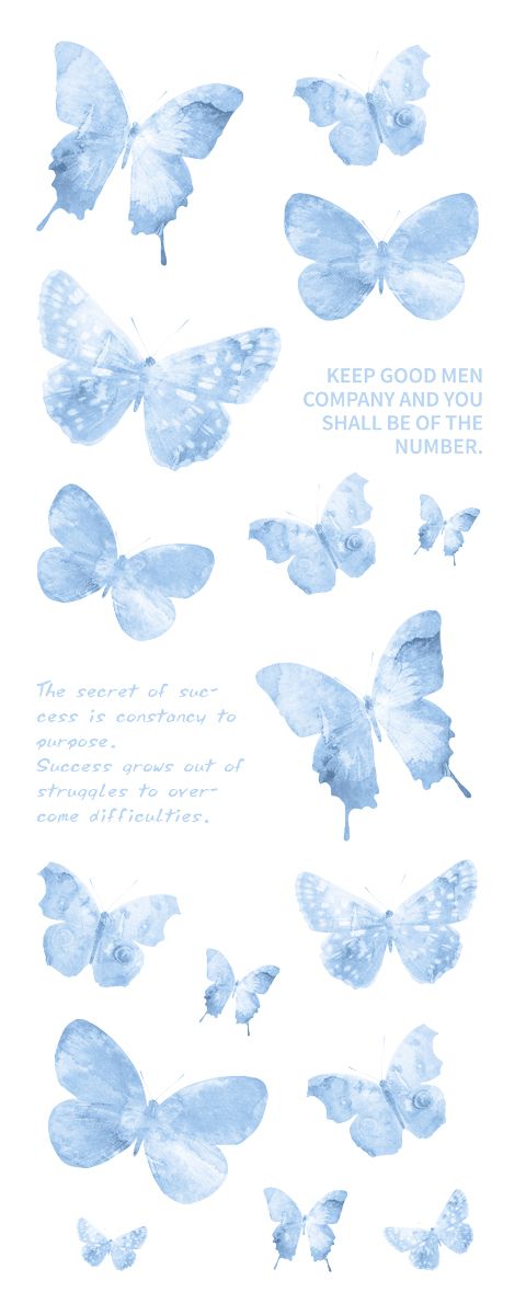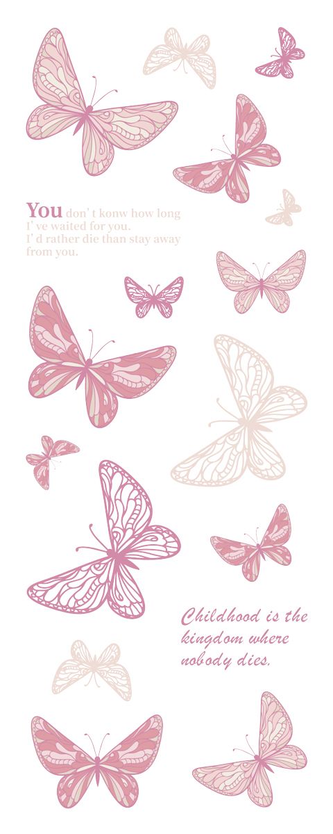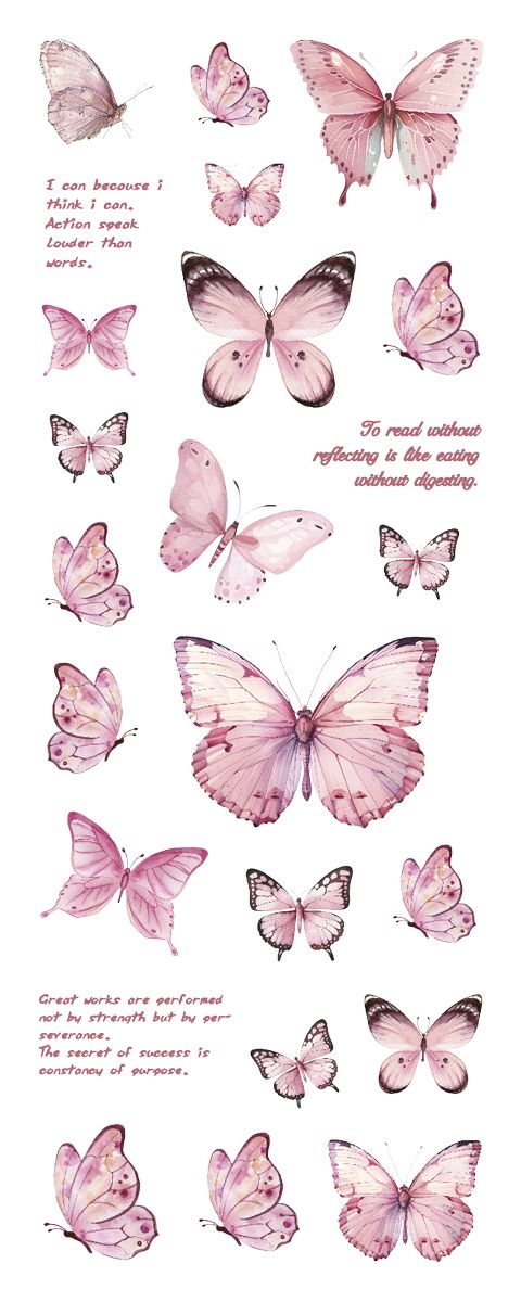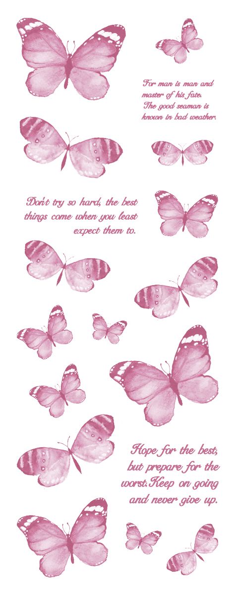 Naklejki foliowe, 6 plansz, wzór: motyle, kolory: czerwone, różowe, błękitne.