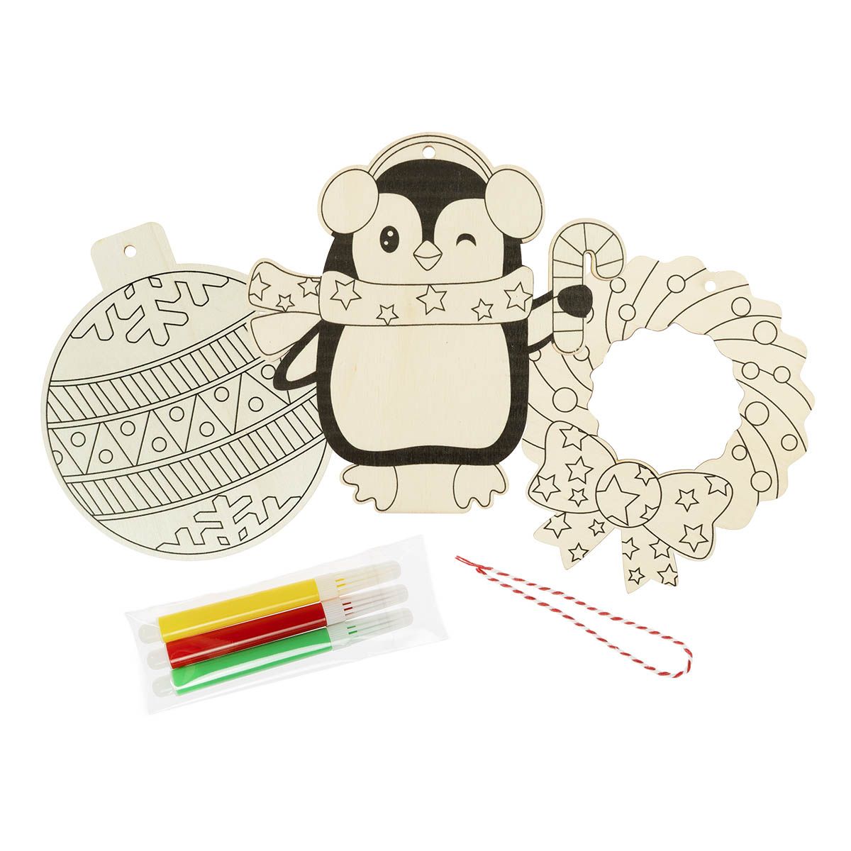 Ozdoba świąteczna Drewniana ozdoba zrób to sam - zimowe wzory Arpex (BN5968)
