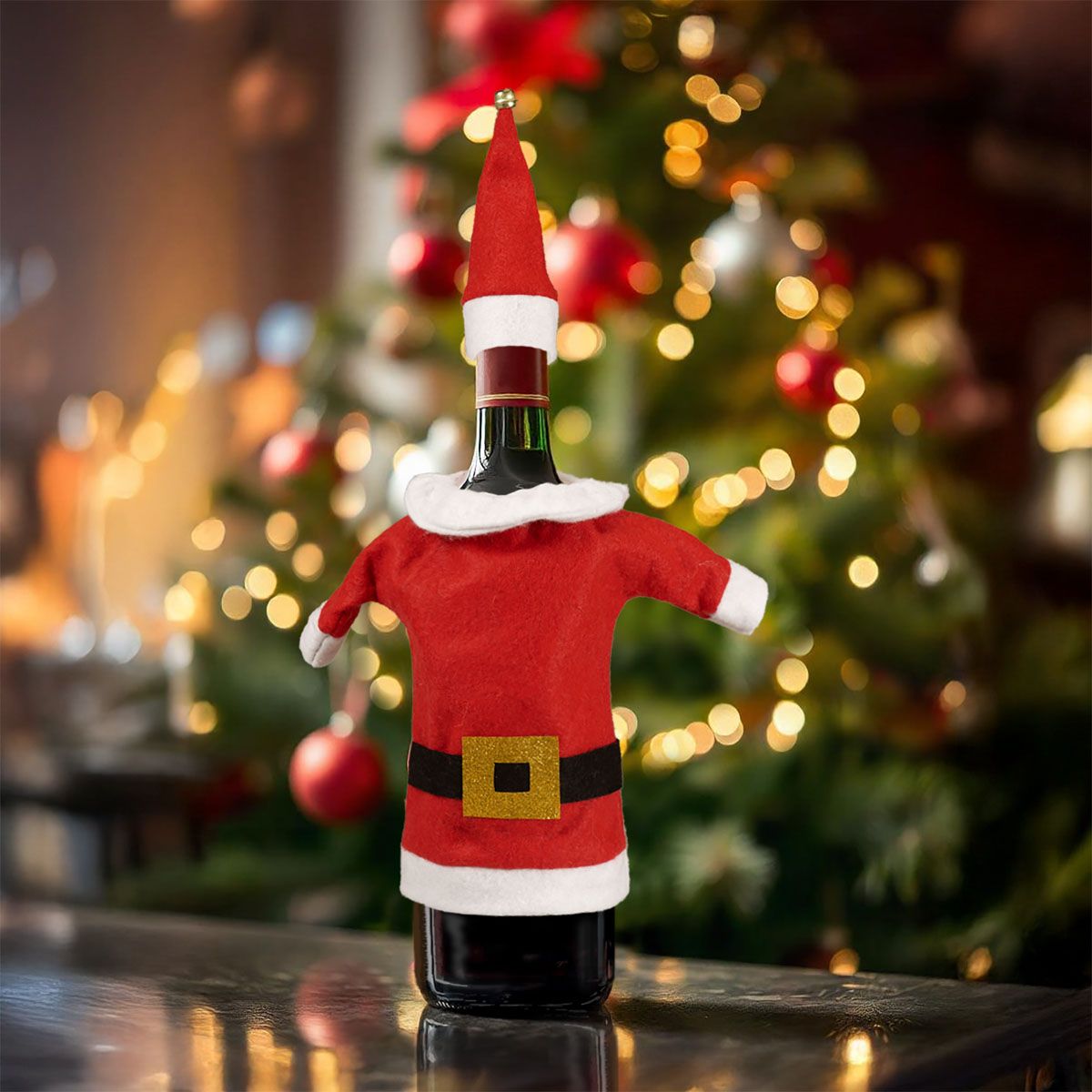 Ubranko na butelkę w formie stroju Mikołaja wyróżnia się świątecznym charakterem, który wprowadza radość i zabawny akcent do każdej okazji podczas zimowych spotkań.