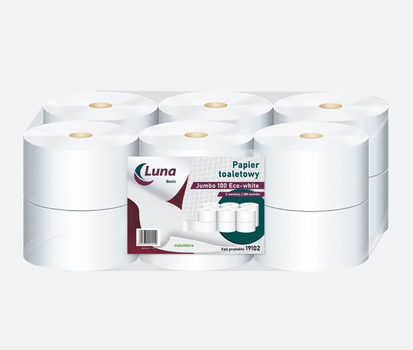 Papier toaletowy 12rol Jumbo 100 eco-white 2 warstwy makulaturowy - 12 rolek w opakowaniu